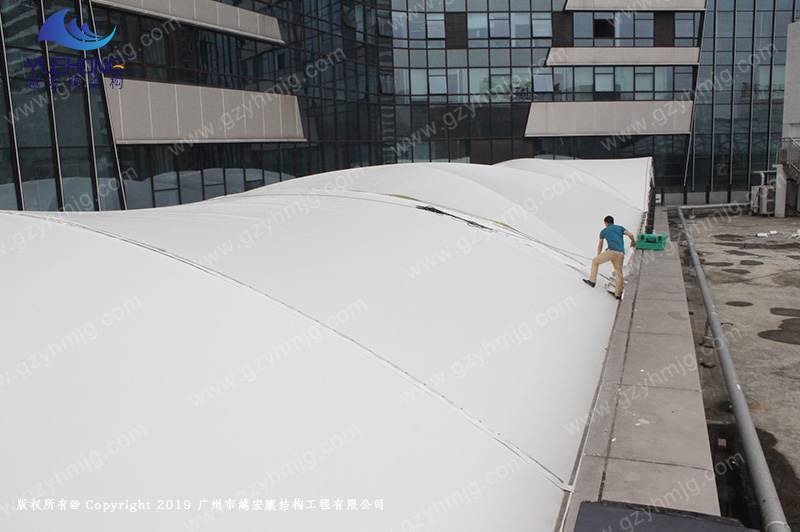此款膜結(jié)構(gòu)遮陽棚,我司能夠提前工程驗收安全保質(zhì),確定了膜結(jié)構(gòu)安裝穩(wěn)固與使用安全,在我司施工隊團結(jié)精神,專業(yè)的安裝技術(shù)方面,能盡快的完成了施工工作。以其獨有的優(yōu)美曲線造型和獨有透光率的遮陽棚,能提升了商業(yè)區(qū)的美觀與恰好的實用。